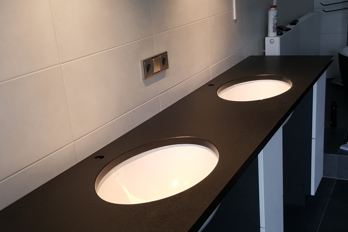 Waschtisch mit zwei Ausschnitten für Unterbaubecken