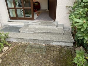 Aussentreppe mit geflammter und gebürsteter Oberfläche